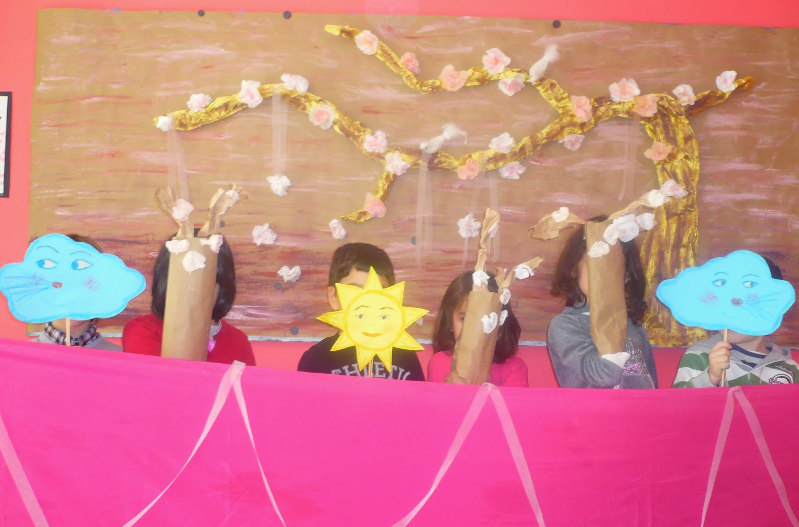 | Ανθισμένες κερασιές με κρεμασμένες ευχές, ομάδα προνηπιακού τμήματος |